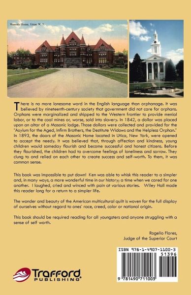 Wiley Hall is a collection of twenty-five short nonfiction stories. The stories are of people, places, and events that the author related to and experienced during his formative years in an orphanage. The characters are representative of humankind-stern, ignorant, wise, industrious, humorous, and playful. The beauty of the Adirondack Mountains come to life at the Camp. Gothic buildings standing tall and foreboding contrasted with the serenity of the chapels. Senior citizens skipped a generation and interacted with children regaling them with stories of World War I, their fathers fighting in the American Civil War, sailing to exotic ports, and experiencing the stock market crash of 1929. While the children covered the face of North America and Europe, prejudices were evident by those in charge, not realizing that many of the children came from backgrounds from southern and eastern Europe. Despite these derogatory manifestations, the children succeeded in their chosen walks of life.