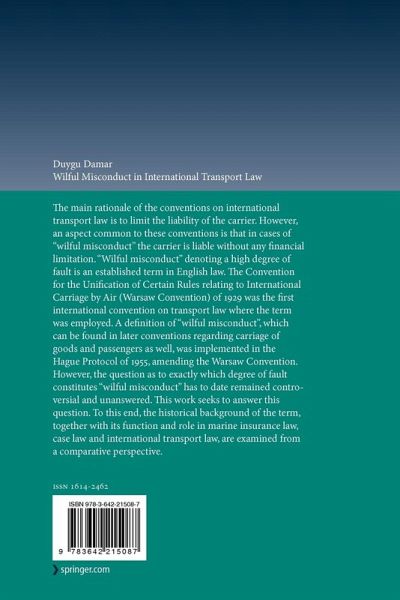 employed. A definition of "wilful misconduct", which can be found in later conventions regarding carriage of goods and passengers as well, was implemented in the Hague Protocol of 1955, amending the Warsaw Convention. However, the question as to exactly which degree of fault constitutes "wilful misconduct" has to date remained controversial and unanswered. This work seeks to answer this question. To this end, the historical background of the term, together with its function and role in marine insurance law, case law