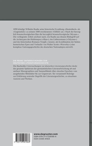 Die vorliegende Arbeit zeichnet nach, wie Wilhelm Raabe in seinen späten Erzählungen "Das Odfeld" (1888) und "Hastenbeck" (1899) den historischen Roman durch den Rückgriff auf die "Aeneis", den "Waverley", den "Kampf um Rom" und "Heart of Midlothian" als Kombination aus Heldenepos und Liebesroman deutet. Dabei wird die Tradition des Heldenepos vorwiegend im "Odfeld" durch die Bezugnahme auf die "Ilias", den Baldurmythos, die Dietrichsage, Klopstocks "Messias", die "Lenore" und Bürgers "Münchhausen", die Tradition des Liebesromans vor allem durch die Abhängigkeit "Hastenbecks" von der "Odyssee", von Longos' "Daphnis und Chloe", dem "Erec", Geßners "Idyllen", der "Luise" und dem "Werther" repräsentiert. Die Terminologie Gérard Genettes weist die beiden Erzählungen Raabes als Musterbeispiele für das Phänomen der Architextualität aus und erlaubt eine deutliche Abgrenzung von Inter- und Hypertextualität, deren Funktionsweise am Beispiel einer Interpretation "Altershausens" als Hypertext der "Odyssee" demonstriert wird.