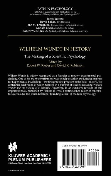 In this new millenium it may be fair to ask, "Why look at Wundt?" Over the years, many authors have taken fairly detailed looks at the work and accomplishments of Wilhelm Wundt (1832-1920). This was especially true of the years around 1979, the centennial of the Leipzig Institute for Experimental Psychology, the birthplace of the "graduate program" in psychology. More than twenty years have passed since then, and in the intervening time those centennial studies have attracted the attention and have motivated the efforts of a variety of historians, philosophers, psychologists, and other social scientists. They have profited from the questions raised earlier about theoretical, methodological, sociological, and even political aspects affecting the organized study of mind and behavior; they have also proposed some new directions for research in the history of the behavioral and social sciences. With the advantage of the historiographic perspective that twenty years can bring, this volume will consider this much-heralded "founding father of psychology" once again. Some of the authors are veterans of the centennial who contributed to a very useful volume, edited by Robert W. Rieber, Wilhelm Wundt and the Making of a Scientific Psychology (New York: Plenum Press, 1980). Others are scholars who have joined Wundt studies since then, and have used that book, among others, as a guide to further work. The first chapter, "Wundt before Leipzig," is essentially unchanged from the 1980 volume.