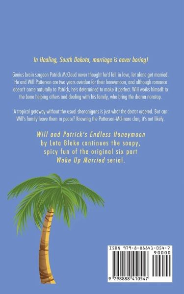 Genius brain surgeon Patrick McCloud never thought he'd fall in love, let alone get married. He and Will Patterson are two years overdue for their honeymoon, and although romance doesn't come naturally to Patrick, he's determined to make it perfect. Will works himself to the bone helping others and dealing with his family, who bring the drama nonstop. A tropical getaway without the usual shenanigans is just what the doctor ordered. But can Will's family leave them in peace? Knowing the Patterson-Molinaro clan, it's not likely... Will and Patrick's Endless Honeymoon by Leta Blake continues the soapy, spicy fun of the original six part Wake Up Married serial. In Healing, South Dakota, marriage is never boring!