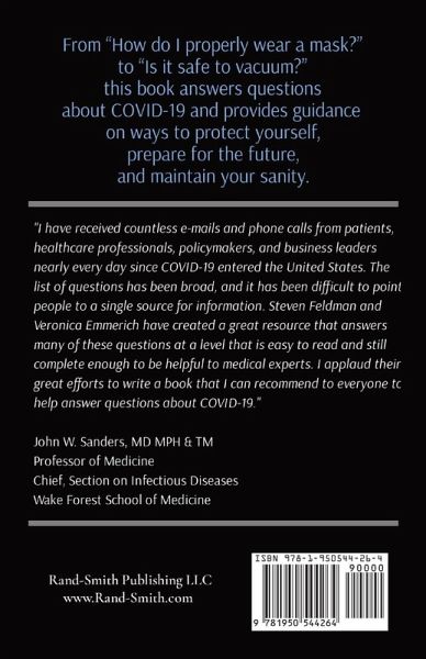 "I have received countless e-mails and phone calls from patients, healthcare professionals, policymakers, and business leaders nearly every day since COVID-19 entered the United States. The list of questions has been broad, and it has been difficult to point people to a single source for information. Steven Feldman and Veronica Emmerich have created a great resource that answers many of these questions at a level that is easy to read and still complete enough to be helpful to medical experts. I applaud their great efforts to write a book that I can recommend to everyone to help answer questions about COVID-19." John W. Sanders, MD MPH & TM Professor of Medicine Chief, Section on Infectious Diseases Wake Forest School of Medicine
