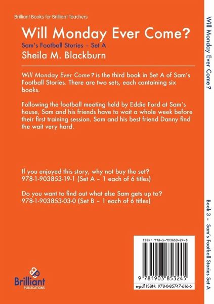 Following the football meeting held by Eddie Ford at Sam¿s house, Sam and his friends have to wait a whole week before their first training session. Sam and his best friend Danny find the wait very hard. Will Monday Ever Come? is the third book in Set A of Sam¿s Football Stories. There are two sets, A and B, each containing six books.
