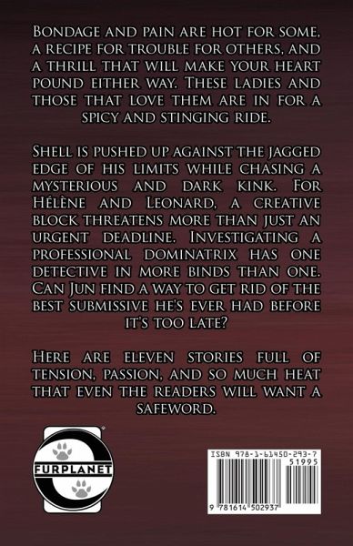 Bondage and pain are hot for some, a recipe for trouble for others, and a thrill that will make your heart pound either way. These ladies and those that love them are in for a spicy and stinging ride. Shell is pushed up against the jagged edge of his limits while chasing a mysterious and dark kink. For Hélène and Leonard, a creative block threatens more than just an urgent deadline. Investigating a professional dominatrix has one detective in more binds than one. Can Jun find a way to get rid of the best submissive he's ever had before it's too late? Here are eleven stories full of tension, passion, and so much heat that even the readers will want a safeword. Features the following stories: Plow Mare by Patrick "Bahumat" Rochefort Dominant Roles by Dark End Mustard Maloto by Slip-Wolf The Duck Quacks Twice by Ocean Tigrox Home at Last by Laura "Munchkin" Lewis Interface by Ava Herries The Were-Human by Chastity Chatterley The Importance of Trust by Tarl "Voice" Hoch The Light in His Eyes by StormKitty Fourth and Long by Whyte Yoté Lucid Daydream by Lafitte Cover art by Sabredtoothed Ermine, Edited by Rechan and Lafitte.