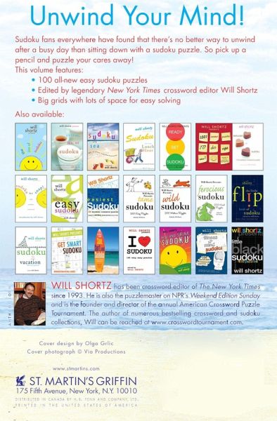 Many solvers love sudoku not just for the intellectual challenge or the sheer fun of solving, but because sudoku puzzles help them attain an almost Zen-like state of mental relaxation. Sudoku, to put it simply, help solvers get in the zone. Features: · 100 all-new easy puzzles · Edited by legendary New York Times crossword editor Will Shortz · Big grids with lots of space for easy solving
