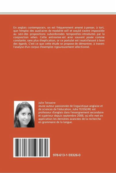 En anglais contemporain, on est fréquemment amené à penser, à tort, que l'emploi des auxiliaires de modalité will et would s'avère impossible au sein des propositions subordonnées temporelles introduites par la conjonction when. Cette antinomie est ainsi souvent posée comme constante, sans plus d'explication, or ce postulat est insatisfaisant à bien des égards. C'est ce que cette étude se propose de démontrer, à travers l'analyse d'un corpus d'exemples rigoureusement sélectionné.