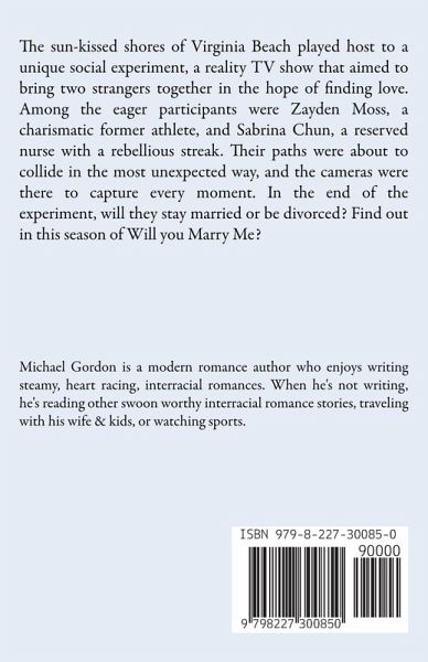 The sun-kissed shores of Virginia Beach played host to a unique social experiment, a reality TV show that aimed to bring two strangers together in the hope of finding love. Among the eager participants were Zayden Moss, a charismatic former athlete, and Sabrina Chun, a reserved nurse with a rebellious streak. Their paths were about to collide in the most unexpected way, and the cameras were there to capture every moment. In the end of the experiment, will they stay married or be divorced? Find out in this season of Will you Marry Me?