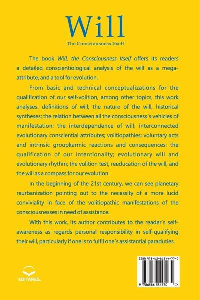 The book Will, the Consciousness Itself offers its readers a detailed conscientiological analysis of the will as a mega-attribute, and a tool for evolution. From basic and technical conceptualizations for the qualification of our self-volition, among other topics, this work analyses: definitions of will; the nature of the will; historical synthe...