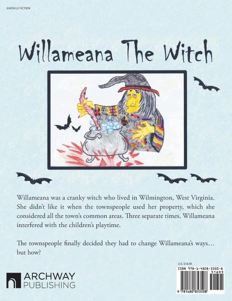Willameana was a cranky witch who lived in Wilmington, West Virginia. She didn’t like it when the townspeople used her property, which she considered all the town’s common areas. Three separate times, Willameana interfered with the children’s playtime. The townspeople finally decided they had to change Willameana’s ways… but how?