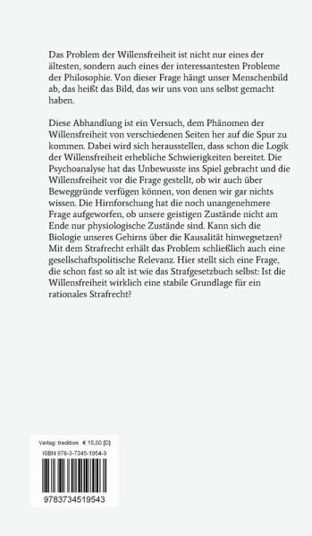 Diese Abhandlung ist ein Versuch, dem Phänomen der Willensfreiheit von verschiedenen Seiten her auf die Spur zu kommen. Dabei wird sich herausstellen, dass schon die Logik der Willensfreiheit erhebliche Schwierigkeiten bereitet. Die Psychoanalyse hat das Unbewusste ins Spiel gebracht und die Willensfreiheit vor die Frage gestellt, ob wir auch über Beweggründe verfügen können, von denen wir gar nichts wissen. Die Hirnforschung hat die noch unangenehmere Frage aufgeworfen, ob unsere geistigen Zustände nicht am Ende nur physiologische Zustände sind. Kann sich die Biologie unseres Gehirns über die Kausalität hinwegsetzen? Mit dem Strafrecht erhält das Problem schließlich auch eine gesellschaftspolitische Relevanz. Hier stellt sich eine Frage, die schon fast so alt ist wie das Strafgesetzbuch selbst: Ist die Willensfreiheit wirklich eine stabile Grundlage für ein rationales Strafrecht?