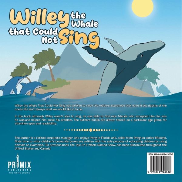 Willey the Whale That Could Not Sing was written to raise the readers awareness that even in the depths of the ocean life isn't always what we would like it to be. In the book although Willey wasn't able to sing, he was able to find new friends who accepted him the way he was,and helped him solve his problem. The authors books are always tested on a particular age group for attention span and readability.