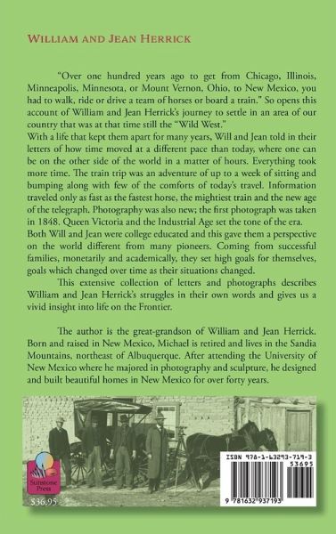"Over one hundred years ago to get from Chicago, Illinois, Minneapolis, Minnesota, or Mount Vernon, Ohio, to New Mexico, you had to walk, ride or drive a team of horses or board a train." So opens this account of William and Jean Herrick's journey to settle in an area of our country that was at that time still the "Wild West." With a life that kept them apart for many years, Will and Jean told in their letters of how time moved at a different pace than today, where one can be on the other side of the world in a matter of hours. Everything took more time. The train trip was an adventure of up to a week of sitting and bumping along with few of the com"Over one hundred years ago to get from Chicago, Illinois, Minneapolis, Minnesota, or Mount Vernon, Ohio, to New Mexico, you had to walk, ride or drive a team of horses or board a train." So opens this account of William and Jean Herrick's journey to settle in an area of our country that was at that time still the "Wild West." With a life that kept them apart for many years, Will and Jean told in their letters of how time moved at a different pace than today, where one can be on the other side of the world in a matter of hours. Everything took more time. The train trip was an adventure of up to a week of sitting and bumping along with few of the comforts of today's travel. Information traveled only as fast as the fastest horse, the mightiest train and the new age of the telegraph. Photography was also new; the first photograph was taken in 1848. Queen Victoria and the Industrial Age set the tone of the era. Both Will and Jean were college educated and this gave them a perspective on the world different from many pioneers. Coming from successful families, monetarily and academically, they set high goals for themselves, goals which changed over time as their situations changed. This extensive collection of letters and photographs describes William and Jean Herrick's struggles in their own words and gives us a vivid insight into life on the Frontier.forts of today's travel. Information traveled only as fast as the fastest horse, the mightiest train and the new age of the telegraph. Photography was also new; the first photograph was taken in 1848. Queen Victoria and the Industrial Age set the tone of the era. Both Will and Jean were college educated and this gave them a perspective on the world different from many pioneers. Coming from successful families, monetarily and academically, they set high goals for themselves, goals which changed over time as their situations changed. This extensive collection of letters and photographs describes William and Jean Herrick's struggles in their own words and gives us a vivid insight into life on the Frontier.