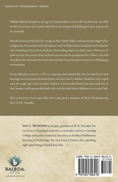 William Balleny Howden at the age of 23 proceeded to create a life of adventure. In 1839 he left the promise of a comfortable life in the shadow of Edinburgh Castle and set sail for Australia. His adventure started with the voyage to New South Wales, and success was triggered by a shipwreck. Encounters with Aborigines, were small problems compared with isolation and unloading cattle and an elephant from sailing ships into deep water. Discovery of gold and the rich pasture land catalysed success and the prosperous Port Albert. You will read about the characters he lived with and how he generated a fortune in a challenging environment. It was difficult to attract a wife to a Spartan and isolated life, but he found love and marriage with American educated Agnes, and they had 12 children. Read how they coped with the tragic loss of five of their children. Uncontrolled bush fires destroyed one of their homes, and business declined with a rail line built from Melbourne to nearby Sale. This is the story of one man’s life, but it also gives a snapshot of life in the pioneering days of S.E. Australia.