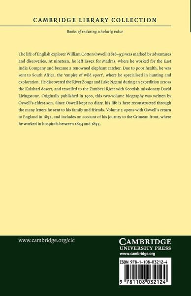 Originally published in 1900, this biography of English explorer William Cotton Oswell (1818â 93) was compiled by his eldest son from correspondence with his family and friends. Volume 2 includes an account of Oswell's journey to the Crimean front, where he worked in hospitals between 1854 and 1855.