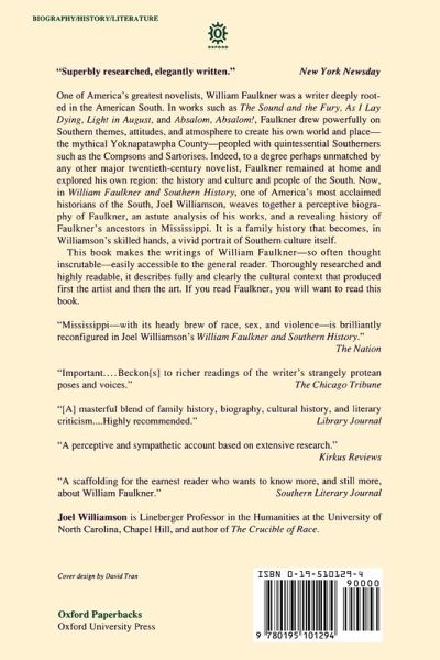 One of America's most acclaimed historians of the South weaves together a perceptive biography of Faulkner with an astute analysis of his works and a revealing history of his ancestors in Mississippi--a family history that becomes, in Williamson's skilled hands, a vivid portrait of Southern culture itself.