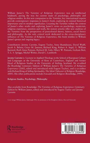 William James's The Varieties of Religious Experience was an intellectual landmark, paving the way for current study of psychology, philosophy and religious studies. In this new companion to the Varieties, key international experts provide contemporary responses to James's book, exploring its seminal historical importance and its modern significance. Locating the Varieties within the context of James's other works and exploring James's views on psychology, mysticism, religious experience, emotion and truth, the sixteen articles offer new analyses of the Varieties from the perspectives of postcolonial theory, history, social theory and philosophy. As the only critical work dedicated to the cross-disciplinary influence of The Varieties of Religious Experience, this book testifies to William James's genius and ongoing legacy.