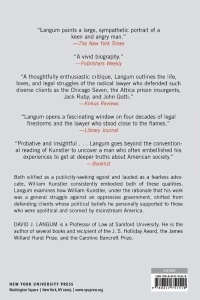 The true story of the defender of the Chicago 7 Alternately vilified as a publicity-seeking egoist and lauded as a rambunctious, fearless advocate, William Kunstler consistently embodied both of these qualities. Kunstler's unrelenting, radical critique of American racism and the legal system took shape as a result of his efforts to enlist the federal judicial system to support the civil rights movement. In the late 60s and the 70s, Kunstler, refocusing his attention on the Black Power and anti-war movement, garnered considerable public attention as defender of the Chicago Seven, and went on to represent such controversial figures as Leonard Peltier, the American Indian Movement leader charged with killing an FBI agent, and Jack Ruby, the killer of Lee Harvey Oswald. Later, Kunstler briefly represented Colin Ferguson, the Long Island Railroad mass murderer, outraging fans and detractors alike with his invocation of the infamous "black rage" defense. Defending those most loathed by mainstream, conventional America, William Kunstler delighted in taking on fiercely political cases, usually representing society's outcasts and pariahs free of charge and often achieving remarkable courtroom results in seemingly hopeless cases. Though Kunstler never gave up his revolutionary underpinnings, he gradually turned from defending clients whose political beliefs he personally supported to taking on apolitical clients, falling back on the broad rationale that his was a general struggle against an oppressive government. What ideological and tactical motives explain Kunstler's obsessive craving for media attention, his rhetorical flourishes in the courtroom and his instinctive and relentless drive for action? How did Kunstler migrate from a comfortable middle-class background to a life as a staunchly rebellious figure in social and legal history? David Langum's portrait gives depth to the already notorious breadth of William Kunstler's life.
