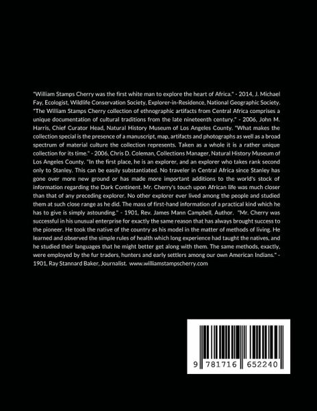WILLIAM STAMPS CHERRY, an American, was the first white man to explore the heart of Africa during the years 1896 to 1900 when the French and the British were colonizing the continent. He traveled alone on foot for three years among the natives, who liked him very much, after one year serving as a civilian marine engineer for the French, and he witnessed scenes so bizarre that to attempt to describe any of them here would be pointless. This book is referred to as 'the explorer's report,' and it includes more than 75 original photographs taken by the explorer that have not been seen in more than 100 years. William Stamps Cherry was celebrated as an explorer second only to Henry Stanley, and he was responsible for 'turning on the light' in Africa where no outsider had ever been before. Follow him as he makes his way through the bush in Central Africa and into lands with villages, natives, and an abundance of wildlife never before heard of, and join him on the rivers he discovered and mapped at the turn of the century in a place larger than the state of Illinois that is located in what is now called the Central African Republic. Cherry's on-the-ground personal observations and experiences in the heart of this incredible country provides the historical context for this country's horrific situation that continues to take place there today. You can discover even more about Mr. Cherry at www.williamstampscherry.com.