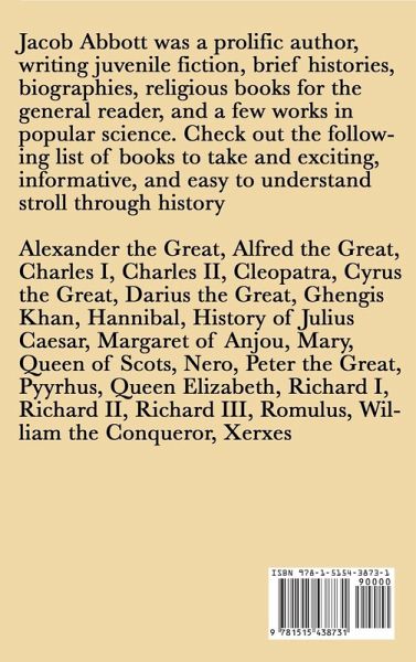 acob Abbott was a prolific author, writing juvenile fiction, brief histories, biographies, religious books for the general reader, and a few works in popular science. Check out the following list of books to take and exciting, informative, and easy to understand stroll through history.