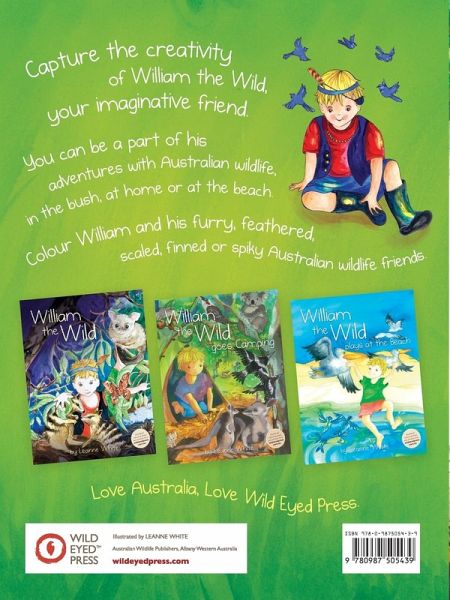 Capture the creativity of William the Wild, your imaginative friend. You can be a part of his adventure with Australian wildlife, in the bush, at home or at the beach. Colour William and his furry, feathered, scaled, finned or spiky Australian wildlife friends. Wild Eyed Press totally supports the concept paying royalties for the use of manuscripts and artworks. Wild Eyed Press sees this as both a moral and intellectual obligation. When you read this book, you can do so with the knowledge that it was fully created by real people for real people. Creators affiliated with Wild Eyed Press sign contracts to say they do not use Artificial intelligence when illustrating or writing children's books for your child. Written and illustrated by real people for real children. Our creators care about literacy and child welfare. They support you, please support them.