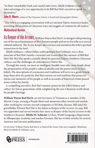 As Keeper of the Arrows, William Wayne Red Hat, Jr., is charged with protecting one of the most sacred possessions of the Cheyenne people and serves his tribe as a revered cultural authority. The Arrow Keeper also oversees and maintains the tribe's spiritual connection to the land. Sibylle Schlesier--whose father, anthropologist Karl Schlesier, was a close associate of Red Hat's family--recorded and transcribed this memoir of Bill Red Hat's life. Through his words, we meet an intelligent, humble man who cares deeply about the perpetuation of his people's cultural identity and the preservation of their beliefs. His descriptions of ceremonies and traditions will serve as a guide to help keep them alive for posterity. Red Hat conveys an oral tradition that preserves stories and memories of his people as well as accounts of historical events passed down within his family.