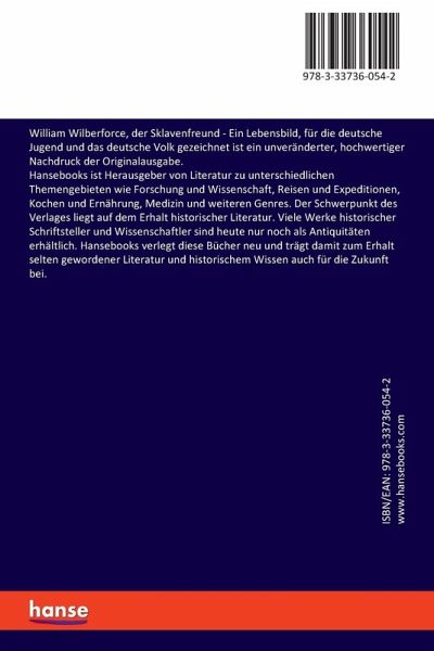William Wilberforce, der Sklavenfreund - Ein Lebensbild, für die deutsche Jugend und das deutsche Volk gezeichnet ist ein unveränderter, hochwertiger Nachdruck der Originalausgabe.