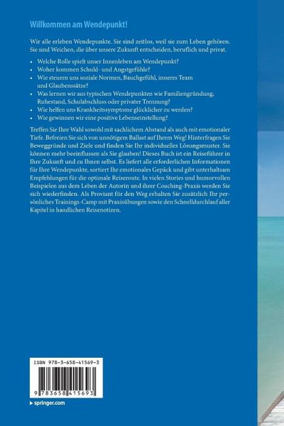 Dieser Ratgeber liefert alle erforderlichen Informationen für Ihre Wendepunkte, sortiert Ihr emotionales Gepäck und gibt unterhaltsam Empfehlungen für die optimale Reiseroute. In vielen Stories und humorvollen Beispielen aus dem Leben der Autorin und ihrer Coaching-Praxis werden Sie sich wiederfinden. Als Proviant für den Weg erhalten Sie Ihr Trainings-Camp mit Praxisübungen sowie den Schnelldurchlauf aller Kapitel in handlichen Reisenotizen.