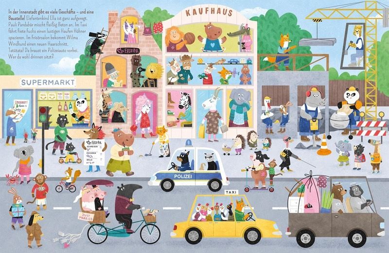 Willkommen in Wimmelstedt, der fröhlichen Tierstadt voller Alltagsabenteuer! Hier gibt es auf jeder Seite neue Geschichten zu entdecken: