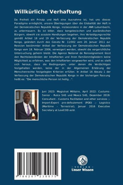 Da Freiheit ein Prinzip und Haft eine Ausnahme ist, hat uns dieses Paradigma ermöglicht, unsere Überlegungen über die Globalität der Haft in der Demokratischen Republik Kongo, insbesondere in der ANR Lubumbashi, zu untermauern. Es ist bitter, dass kongolesischen und ausländischen Bürgern, obwohl sie asoziale Handlungen begehen, ihre Verteidigungsrechte gemäß Artikel 18 und 19 der Verfassung der Demokratischen Republik Kongo, geändert durch das Gesetz Nr. 11/002 vom 20. Januar 2011 zur Revision bestimmter Artikel der Verfassung der Demokratischen Republik Kongo vom 18. Februar 2006, verweigert werden, obwohl die vorgerichtliche Untersuchung geheim bleibt. Die Agence National de Renseignement lässt den Rechtsbeiständen der Inhaftierten und ihren Familienmitgliedern keine Möglichkeit zu erfahren, was den Inhaftierten vorgeworfen wird, und es stellt sich heraus, dass die Bedingungen, unter denen die Verdächtigen festgehalten werden, keine der in der Allgemeinen Erklärung der Menschenrechte festgelegten Kriterien erfüllen. In Artikel 16 Absatz 1 der Verfassung der Demokratischen Republik Kongo in der bisherigen Fassung heißt es: "Die menschliche Person ist heilig...".