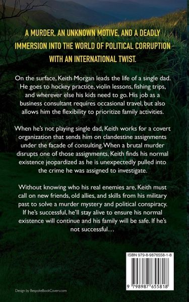 A murder, an unknown motive, and a deadly immersion into the world of political corruption with an international twist. On the surface, Keith Morgan leads the life of a single dad. He goes to hockey practice, violin lessons, fishing trips, and wherever else his kids need to go. His job as a business consultant requires occasional travel, but also allows him the flexibility to prioritize family activities. When he's not playing single dad, Keith works for a covert organization that sends him on clandestine assignments under the facade of consulting. When a brutal murder disrupts one of those assignments, Keith finds his normal existence jeopardized as he is unexpectedly pulled into the crime he was assigned to investigate. Without knowing who his real enemies are, Keith must call on new friends, old allies, and skills from his military past to solve a murder mystery and political conspiracy. If he's successful, he'll stay alive to ensure his normal existence will continue and his family will be safe. If he's not successful...