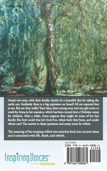 Anna's two sons, with their family, decide it's a beautiful day for taking the yacht out. Suddenly there is a big explosion on board! All are reported lost at sea. But are they really? Years later, three young men and one girl come to work for Anna in her mansion, which has been turned into a Christian camp for children. After a while, Anna suspects they might be some of her lost family. But how could that be? And if so, where have they been, and under whose care? The answer to these questions and many more lie within. The meaning of the weeping willow tree stretches back into ancient times and is associated with life, death, and rebirth.