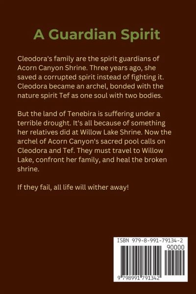 Cleodora's family are the spirit guardians of Acorn Canyon Shrine. Three years ago, she saved a corrupted spirit instead of fighting it. Cleodora became an archel, bonded with the nature spirit Tef as one soul with two bodies. But the land of Tenebira is suffering under a terrible drought. It's all because of something her relatives did at Willow Lake Shrine. Now the archel of Acorn Canyon's sacred pool calls on Cleodora and Tef. They must travel to Willow Lake, confront her family, and heal the broken shrine. If they fail, all life will wither away!