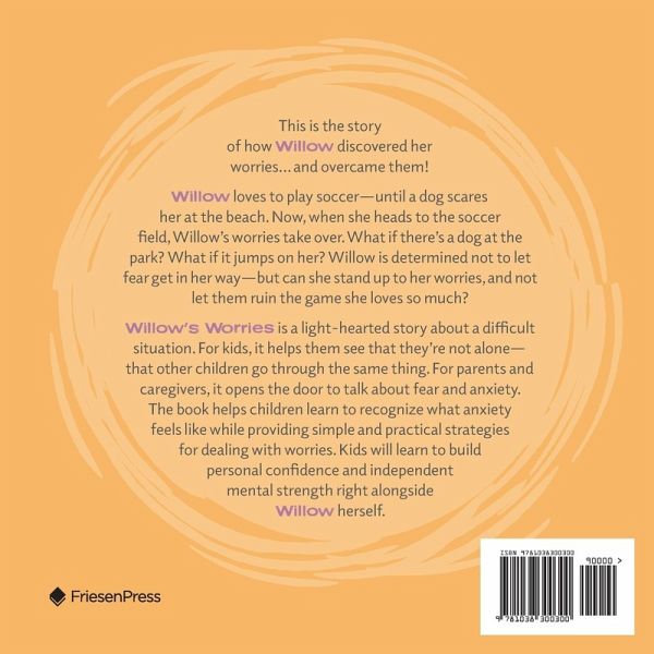 This is the story of how Willow discovered her worries...and overcame them! Willow loves to play soccer-until a dog scares her at the beach. Now, when she heads to the soccer field, Willow's worries take over. What if there's a dog at the park? What if it jumps on her? Willow is determined not to let fear get in her way-but can she stand up to her worries, and not let them ruin the game she loves so much? Willow's Worries is a light-hearted story about a difficult situation. For kids, it helps them see that they're not alone-that other children go through the same thing. For parents and caregivers, it opens the door to talk about fear and anxiety. The book helps children learn to recognize what anxiety feels like while providing simple and practical strategies for dealing with worries. Kids will learn to build personal confidence and independent mental strength right alongside Willow herself.