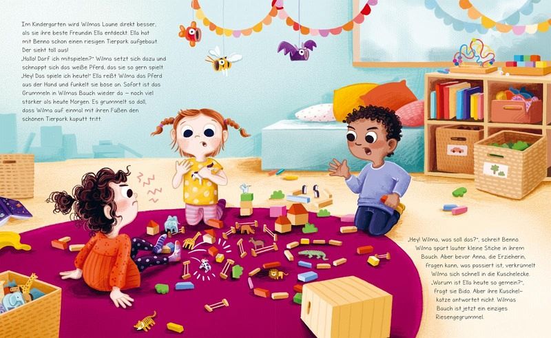 Der Wutknödel erklärt Wilma, dass er den ganzen Tag aus kleinen Ärgerfäden in ihrem Bauch gewachsen ist. Aber jetzt möchte er wieder nach Hause ins kuschelige Riesenknäuel. Dafür müssen die beiden herausfinden, wie Wilma am besten mit ihrer Wut umgehen kann. Sie probieren alles Mögliche aus: hüpfen, schreien, pupsen, Purzelbäume schlagen - und finden am Ende eine sehr kreative Lösung. So wird aus einem oberpusmiesen doch noch ein obersupertoller Tag!