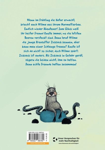 Das Murmeltiermädchen Wilma lebt mit ihrer Familie auf einem Steinfeld am Waldrand - nicht ganz ungefährlich, denn in direkter Nachbarschaft befindet sich das Gebiet der bösartigen Schlangen. Wilmas bester Freund ist Knolle und immer an ihrer Seite. Doch als Wilma die junge Kreuzotter Zickzack kennenlernt, hat er Zweifel, ob es eine gute Idee ist, sich mit einer Schlange anzufreunden. Aber Wilma vertraut auf das Gute - und soll Recht behalten. Zickzack will die Schlangen verlassen, was nicht unentdeckt bleibt. Nicht nur für ihn, auch für die Murmeltiere wird die Lage gefährlich. Für Wilma und ihre Freunde ist klar: Sie halten zusammen, jetzt erst recht!