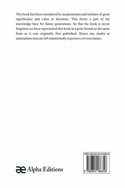 This book has been considered by academicians and scholars of great significance and value to literature. This forms a part of the knowledge base for future generations. So that the book is never forgotten we have represented this book in a print format as the same form as it was originally first published. Hence any marks or annotations seen are left intentionally to preserve its true nature.