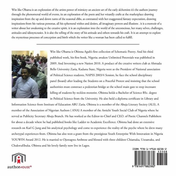 Win like Obama is an exploration of the artists power of mimicry an ancient art of the early alchemists it's the authors journey through the phenomenal world of events, its an exploration of the poets and her wizardly crafts at the marketplace drawing inspiration from the up and down turns of the seasonal ebbs, as contrasted with her exaggerated fantasy expectation , drawing inspirations from his various personas, all his ephemeral wishes and desires, all imaginary powers and illusions . it is a memoir of a writer about her awakening to the creative spirit. it is an exploration into the world of the unconscious, her many selves, challenges, attitudes and idiosyncrasies. It is also the telling of the story of his attitude and others towards his craft. It is an attempt to explore the mysterious processes of conception and birth which the writer like a woman has been called to fulfill.