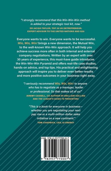 Everyone wants to win. Everyone wants to be successful. Win, Win, Win! brings a new dimension to the well-known Win-Win approach. It will help you achieve success more often, both short- and long-term, in internal and external company negotiations. Written by an expert with over 30 years of experiencing Win-Win firsthand, this book is a must -have guide to gaining favorable results in any business situation. It first explores the power of the traditional Win-Win concept, with its predictions for any negotiation. Then the book introduces a new dimension-the Mutual Win. This improved, expanded model uses the Win-Win-Win Pyramid-explained in Waterhouse's lucid and humorous voice-to ensure even better results and a positive outcome every time. With the book's real-life case studies, hands-on advice, and top tips on how to get the most doubting Adversary to the table, you will be inspired to apply Waterhouse's practical and enlightening methods to your business from tomorrow.