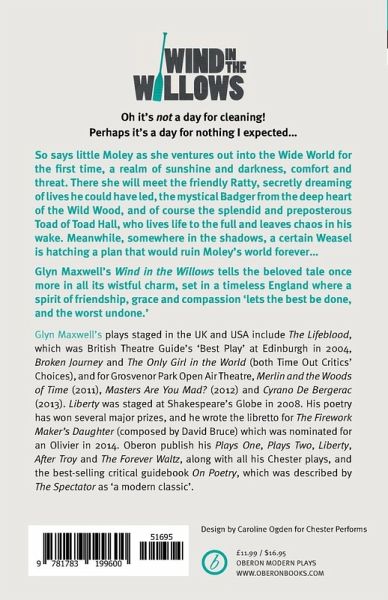 'There's nothing - absolutely nothing - half so much worth doing as messing about in boats.' A spot of spring cleaning on a sunny English riverbank - so begins the adventures of four beloved friends. Follow Mole, Ratty, Toad and Badger on their journey through riverside picnics, wild woods, jailbreaks, car chases and cross-dressing amphibians to save Toad Hall from disaster and get little Mole home. Will the foursome triumph? And will everybody learn their lessons? A delightful tale of camaraderie and joy. Poop poop! A new adaptation of The Wind in the Willows, a classic children's novel notable for its mixture of mysticism, adventure, morality, and camaraderie and celebrated for its evocation of the nature of the River Banks.