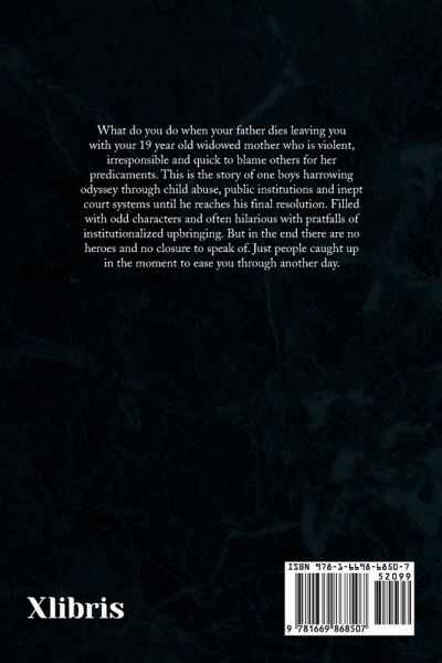 What do you do when your father dies leaving you with your 19 year old widowed mother who is violent, irresponsible and quick to blame others for her predicaments. This is the story of one boys harrowing odyssey through child abuse, public institutions and inept court systems until he reaches his final resolution. Filled with odd characters and often hilarious with pratfalls of institutionalized upbringing. But in the end there are no heroes and no closure to speak of. Just people caught up in the moment to ease you through another day.