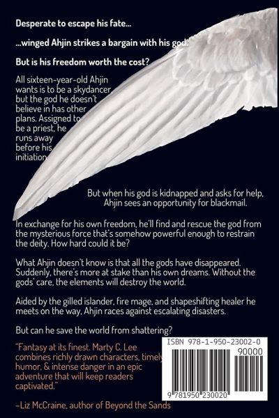 Desperate to escape his fate... ...winged Ahjin strikes a bargain with his god. But is his freedom worth the cost? All sixteen-year-old Ahjin wants is to be a skydancer, but the god he doesn't believe in has other plans. Assigned to be a priest, he runs away before his initiation. But when his god is kidnapped and asks for help, Ahjin sees an opportunity for blackmail. In exchange for his own freedom, he'll find and rescue the god from the mysterious force that's somehow powerful enough to restrain the deity. How hard could it be? What Ahjin doesn't know is that all the gods have disappeared. Suddenly, there's more at stake than his own dreams. Without the gods' care, the elements will destroy the world. Aided by the gilled islander, fire mage, and shapeshifting healer he meets on the way, Ahjin races against escalating disasters. But can he save the world from shattering? Wind of Choice is an enchanted coming-of-age adventure full of twists, turns, humor, unexpected friendships, danger and heroism. Get your copy today.