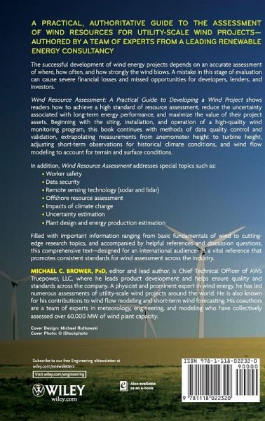 Michael C. Brower, PhD, editor and lead author, is Chief Technical Officer of AWS Truepower, LLC, where he leads product development and helps ensure quality and standards across the company. A physicist and prominent expert in wind energy, he has led numerous assessments of utility-scale wind projects around the world. He is also known for his contributions to wind flow modeling and short-term wind forecasting. His coauthors are a team of experts in meteorology, engineering, and modeling who have collectively assessed over 60,000 MW of wind plant capacity.