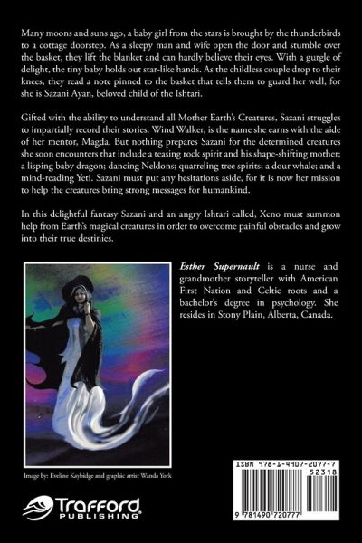 ¿Prose convey a light-hearted and ethereal atmosphere reminiscent of folklore and fairy tales.¿ -US Review Of Books A young Ishtari from the stars must record messages for humanity from Mother Earth¿s hidden creatures. She faces a gigantic rock spirit and his shape-shifting mother; a destructive baby dragon; dancing rock gardeners; drunken tree spirits; a bossy whale, mind-reading Yeti and dying gryphon just for starters. Sazani Ayan will need assistance from a wise woman mentor and an irritating young warrior to overcome many painful obstacles and fulfill her destiny. This adult version will soon be accompanied by a Wind Walker series of visually stunning children¿s books.