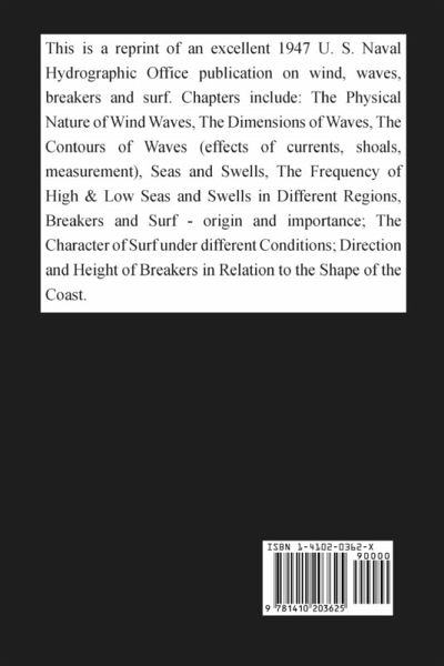 This is a reprint of an excellent 1947 U. S. Naval Hydrographic Office publication on wind, waves, breakers and surf. Chapters include: The Physical Nature of Wind Waves, The Dimensions of Waves, The Contours of Waves (effects of currents, shoals, measurement), Seas and Swells, The Frequency of High