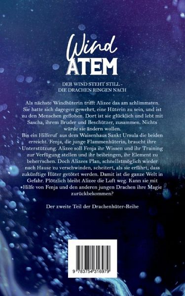 Der Wind steht still - die Drachen ringen nach Luft Als nächste Windhüterin trifft Alizee das am schlimmsten. Sie hatte sich dagegen gewehrt, eine Hüterin zu sein, und ist zu den Menschen geflohen. Dort ist sie glücklich und lebt mit Sascha, ihrem Bruder und Beschützer, zusammen. Nichts würde sie ändern wollen.Bis ein Hilferuf aus dem Waisenhaus Sankt Ursula die beiden erreicht. Fenja, die junge Flammenhüterin, braucht ihre Unterstützung. Alizee soll Fenja ihr Wissen und ihr Training zur Verfügung stellen und ihr beibringen, ihr Element zu beherrschen. Ihr Plan, schnellstmöglich wieder nach Hause zu verschwinden, scheitert, als sie erfährt, dass zukünftige Hüter getötet werden. Damit ist die ganze Welt in Gefahr. Plötzlich bleibt Alizee die Luft weg. Kann sie mit Hilfe von Fenja und den anderen jungen Drachen ihre Magie zurückbekommen?Der zweite Teil der Drachenhüter-Reihe.