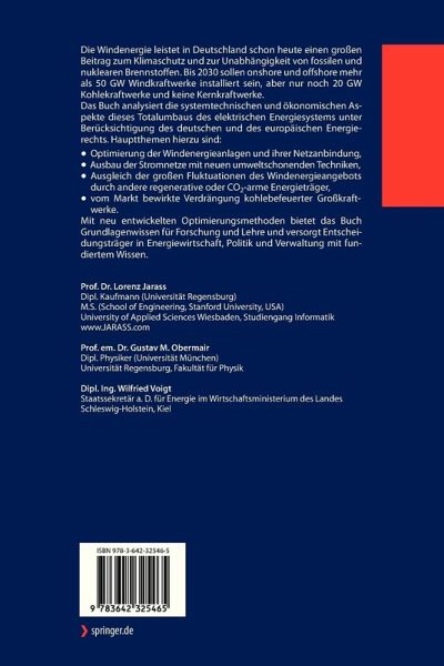 Die Windenergie leistet in Deutschland schon heute einen großen Beitrag zum Klimaschutz und zur Unabhängigkeit von fossilen und nuklearen Brennstoffen. Bis 2030 sollen onshore und offshore mehr als 50 GW Windkraftwerke installiert sein, aber nur noch 20 GW Kohlekraftwerke und keine Kernkraftwerke. Das Buch analysiert die systemtechnischen und ökonomischen Aspekte dieses Totalumbaus des elektrischen Energiesystems unter Berücksichtigung des deutschen und des europäischen Energierechts. Hauptthemen hierzu sind: Optimierung der Windenergieanlagen und ihrer Netzanbindung, Ausbau der Stromnetze mit neuen umweltschonenden Techniken, Ausgleich der großen Fluktuationen des Windenergieangebots durch andere regenerative oder CO2-arme Energieträger, vom Markt bewirkte Verdrängung kohlebefeuerter Großkraftwerke. Mit neu entwickelten Optimierungsmethoden bietet das Buch Grundlagenwissen für Forschung und Lehre und versorgt Entscheidungsträger in Energiewirtschaft, Politik und Verwaltung mit fundiertem Wissen.