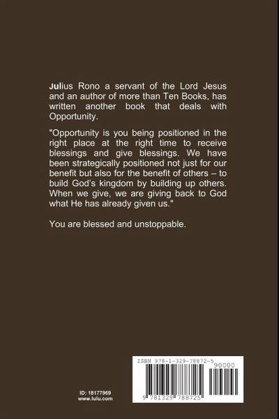 Opportunity is you being positioned in the right place at the right time to receive blessings and give blessings. We have been strategically positioned not just for our benefit but also for the benefit of others - to build God's kingdom by building up others. When we give, we are giving back to God what He has already given us.