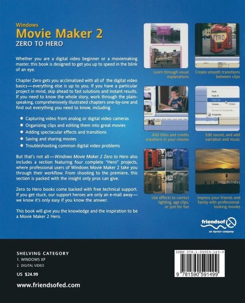 With a Zero to Hero book you can choose how you learn. You can choose to learn everything you need to know about Windows Movie Maker 2 by working through the first section of the book from start to finish. Alternatively, you can dive straight in to the inspirational 'Hero' chapters and refer back as and when you need. Then later, when you're a hero yourself, the book is easily used as a reference tool.