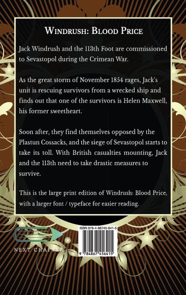 Jack Windrush and the 113th Foot are commissioned to Sevastopol during the Crimean War. As the great storm of November 1854 rages, Jack's unit is rescuing survivors from a wrecked ship and finds out that one of the survivors is Helen Maxwell, his former sweetheart. Soon after, they find themselves opposed by the Plastun Cossacks, and the siege of Sevastopol starts to take its toll. With British casualties mounting, Jack and the 113th need to take drastic measures to survive. This is the large print edition of Windrush: Blood Price, with a larger font / typeface for easier reading.¿