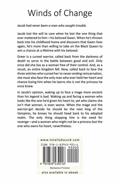 Jacob had never been a man who sought trouble. Jacob lost the will to care when he lost the one thing that ever mattered to him—his beloved Gwen. When he’s thrown back into his childhood home and discovers that Gwen lives again, he’s more than willing to take on the Black Queen to win a chance at a lifetime with his beloved. Greer is a cursed warrior, called back from the darkness of death to serve in the battle between good and evil. Only once did she live as a woman free of their control. And, as a result, an entire kingdom fell. Now, called back to face the three witches who cursed her to never-ending reincarnation, she must also face the only man who ever held her heart and chance losing him when he learns she is not the princess he once knew. In Jacob’s opinion, waking up to face a mage more ancient than his legend is bad. Waking up and facing a woman who looks like the one he’d given his heart to, yet who claims she isn’t that woman, is even worse. When the mage and the warrior-girl decide he should be the next king of the Vampires, he knows he should head back to his adopted realm. The only thing stopping him is the need for revenge—and a woman who might not be a princess but the one who owns his heart, nevertheless.